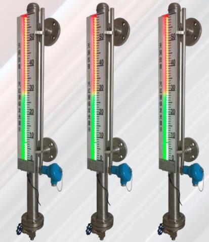 11、當(dāng)配有遠(yuǎn)傳配套儀表時需做到如下幾條: 遠(yuǎn)傳配套儀表上感應(yīng)面應(yīng)面向和緊貼主導(dǎo)管; 應(yīng)使遠(yuǎn)傳配套儀表緊貼液位計主導(dǎo)管,并用不銹鋼抱箍固定(禁用鐵質(zhì)); 遠(yuǎn)傳配套儀表零位應(yīng)與液位計零位指示處在同一水平線上; 遠(yuǎn)傳配套儀表與顯示儀表或工控機之間的連線最好單獨穿保護管敷設(shè)或用屏蔽二芯電纜敷設(shè); 接線盒進(jìn)線孔敷設(shè)后,要求密封良好,以免雨水、潮氣等侵入而使遠(yuǎn)傳配套儀表不能正常工作,接線盒在檢修或調(diào)試完成后應(yīng)及時蓋上。磁翻板雙色液位計它是由本體、翻板箱(由紅、白雙色磁性小翻板組成)、浮子、法蘭蓋等組。