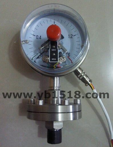 其隔膜結(jié)構(gòu)可有效隔離強(qiáng)腐蝕、高溫、高粘度、易結(jié)晶、易凝固、有固體浮動(dòng)物的壓力介質(zhì),以保證電接點(diǎn)表頭能有效的測(cè)(控)系統(tǒng)或機(jī)械的工作壓力。